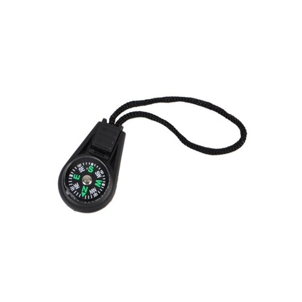 The Explorer Pocket Compass measures 25mm in diameter. It has a black composition casing with black face and a black cord lanyard. This lightweight, compact and effective compass is great to have as a main or back-up navigation device.