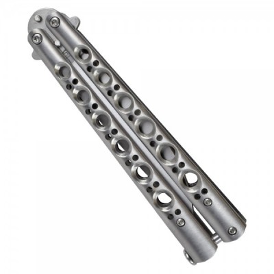Les manches de ce couteau sont en aluminium argent texturé , de plus l'aluminium permet de diminuer le poids rendant ainsi ce couteau papillon confortable.