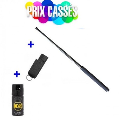 BASTON TELESCOPIC 53 CM + PUMN AMERICAN + APĂRARE BOMBĂ CU GAZE LACRIMOGENE KO 40 ML